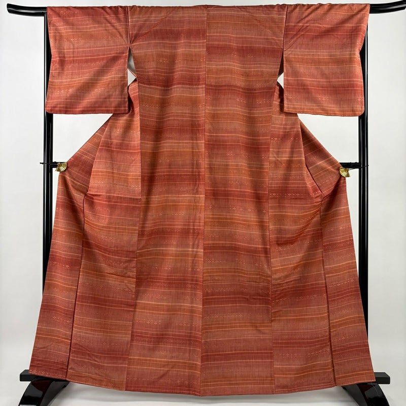 【紬】 赤系 赤茶 優品 A 約160cm~約169cm 裄丈67cm-68cm (M)size 袖丈48cm 4000-7980 美品 二万以下