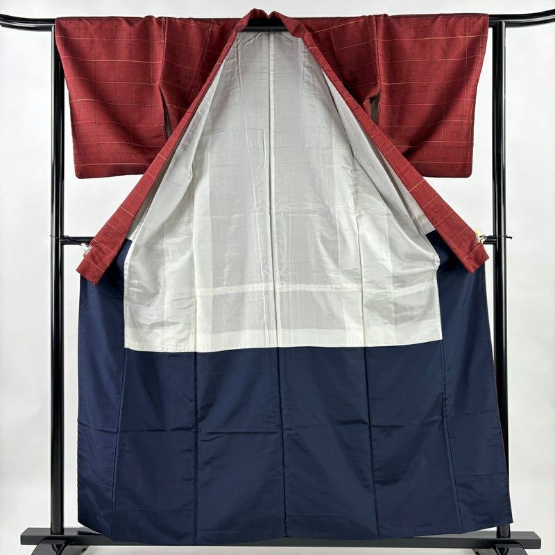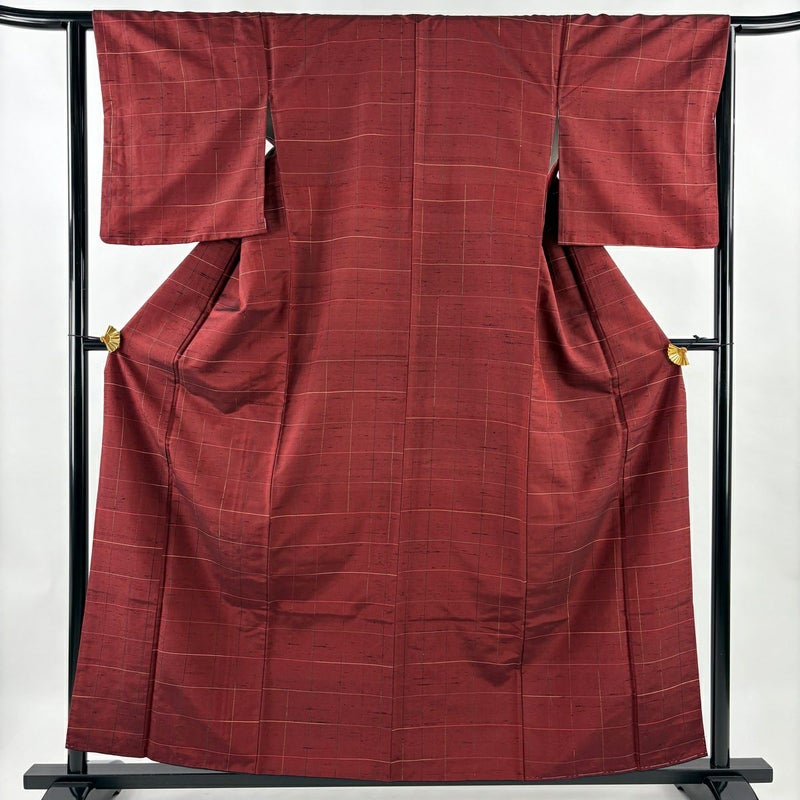 【紬】 赤系 えんじ色 優品 B 約150cm~約159cm 裄丈63cm-64cm (S)size 袖丈49cm -3980 二万以下