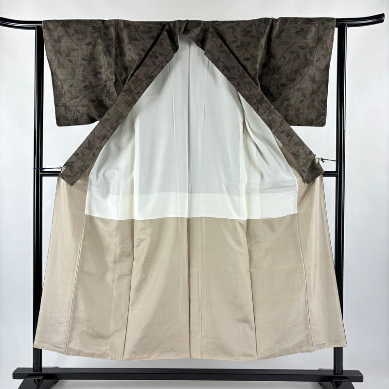 【紬】 茶系 焦茶色 優品 B 約150cm~約159cm 裄丈63cm-64cm (S)size 袖丈47cm -3980 二万以下