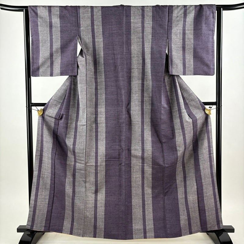 【紬】 紫系 紫 秀品 A 約160cm~約169cm 裄丈63cm-64cm (M)size 袖丈49cm 7990-9980 美品 二万以下
