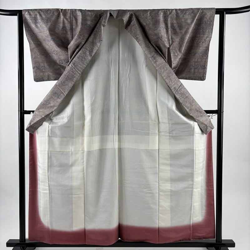 【紬】 灰色系 灰紫 秀品 A 約160cm~約169cm 裄丈62cm以下 (S)size 袖丈47cm 7990-9980 美品 二万以下