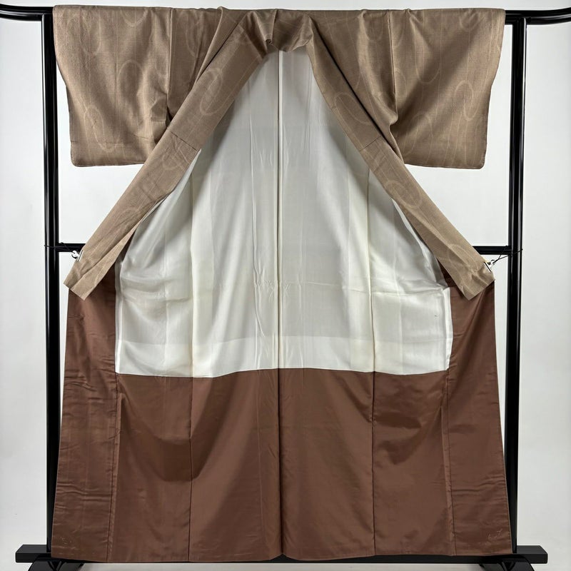 【紬】 茶系 薄茶色 秀品 A 約160cm~約169cm 裄丈62cm以下 (S)size 袖丈46cm以下 7990-9980 美品 二万以下