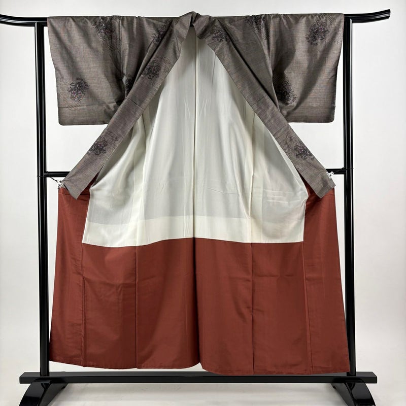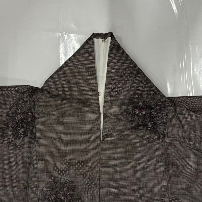 【着物ランク】秀品 【素材】正絹 【身丈】約156cm 【裄丈】約62.5cm 【袖丈】約46.5cm 【袖幅】約32.5cm 【前幅】約25cm 【後幅】約30.5cm 【サイズ】S 【着物仕立て】袷 【着用時期】10~5月 【状態ランク】ランクA 【着物着用シーン】気軽なパーティー、観劇、食事会、正月、気軽なお茶会、街着