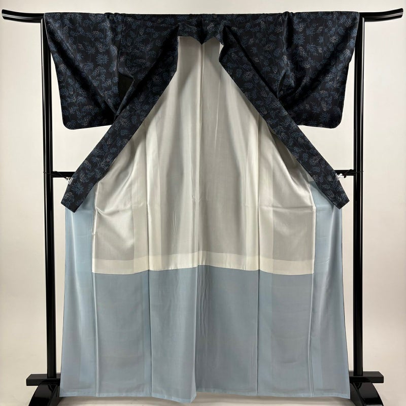 【紬】 青系 青黒 秀品 B 約160cm~約169cm 裄丈65cm (M)size 袖丈49cm 4000-7980 二万以下