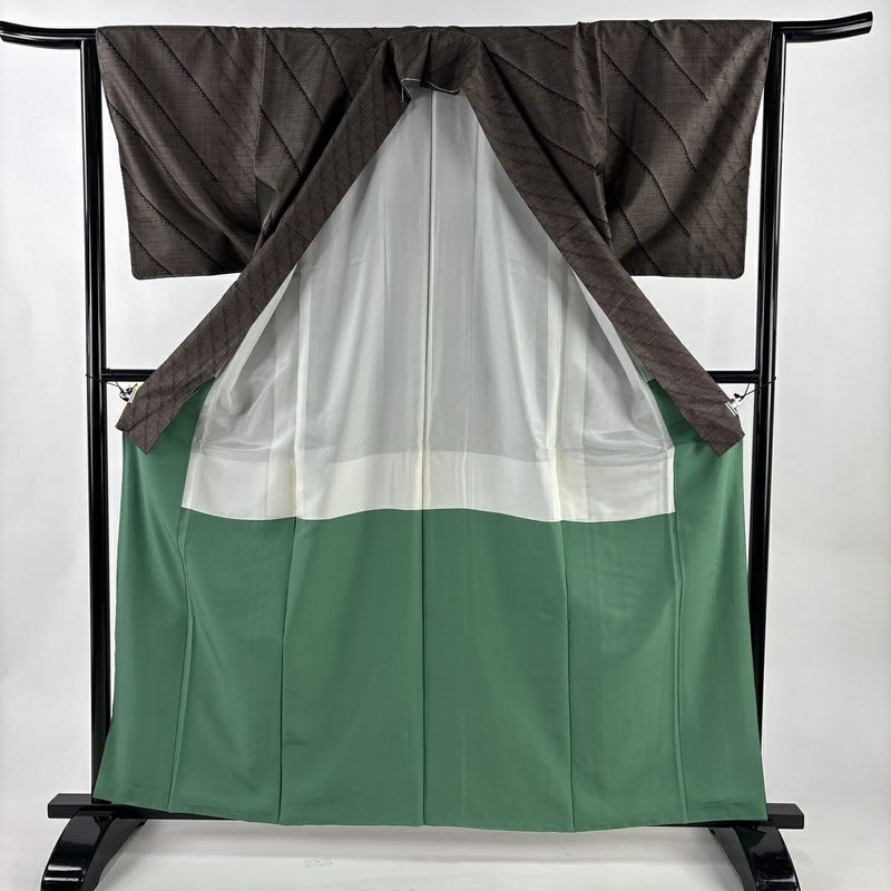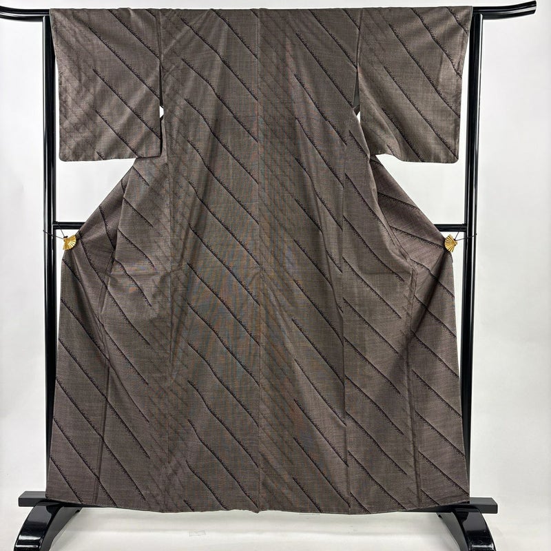 【紬】 茶系 焦茶色 秀品 A 約160cm~約169cm 裄丈63cm-64cm (M)size 袖丈49cm 7990-9980 美品 二万以下