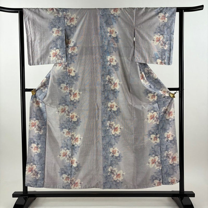 【着物ランク】秀品 【素材】正絹 【身丈】約155cm 【裄丈】約62cm 【袖丈】約48.5cm 【袖幅】約32cm 【前幅】約23cm 【後幅】約28cm 【サイズ】S 【着物仕立て】袷 【着用時期】10~5月 【状態ランク】ランクA 【着物着用シーン】気軽なパーティー、観劇、食事会、正月、気軽なお茶会、街着