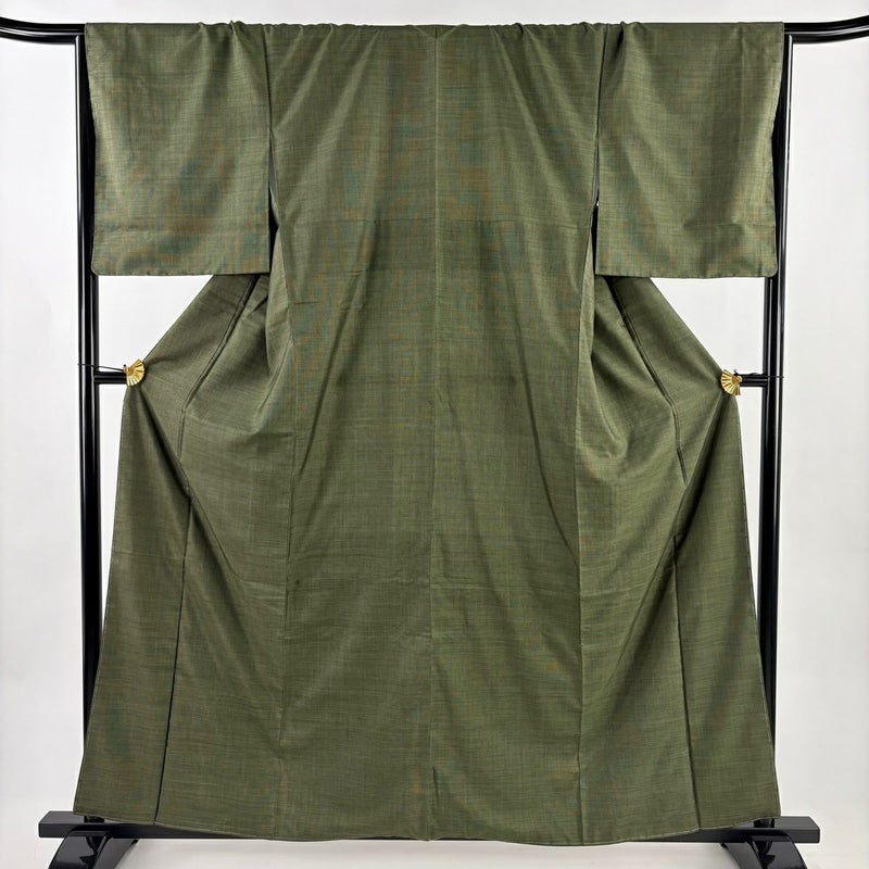 【紬】 茶系 茶緑色 秀品 A 約160cm~約169cm 裄丈67cm-68cm (L)size 袖丈49cm 7990-9980 美品 二万以下