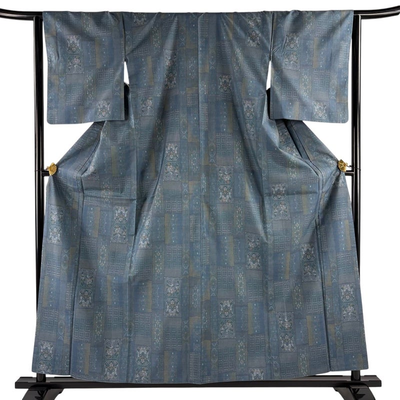 【着物ランク】名品 【素材】正絹 【身丈】約158cm 【裄丈】約64cm 【袖丈】約49cm 【袖幅】約33cm 【前幅】約25cm 【後幅】約30cm 【サイズ】M 【着物仕立て】袷 【着用時期】10~5月 【状態ランク】ランクB 【着物着用シーン】気軽なパーティー、観劇、食事会、正月、気軽なお茶会、街着