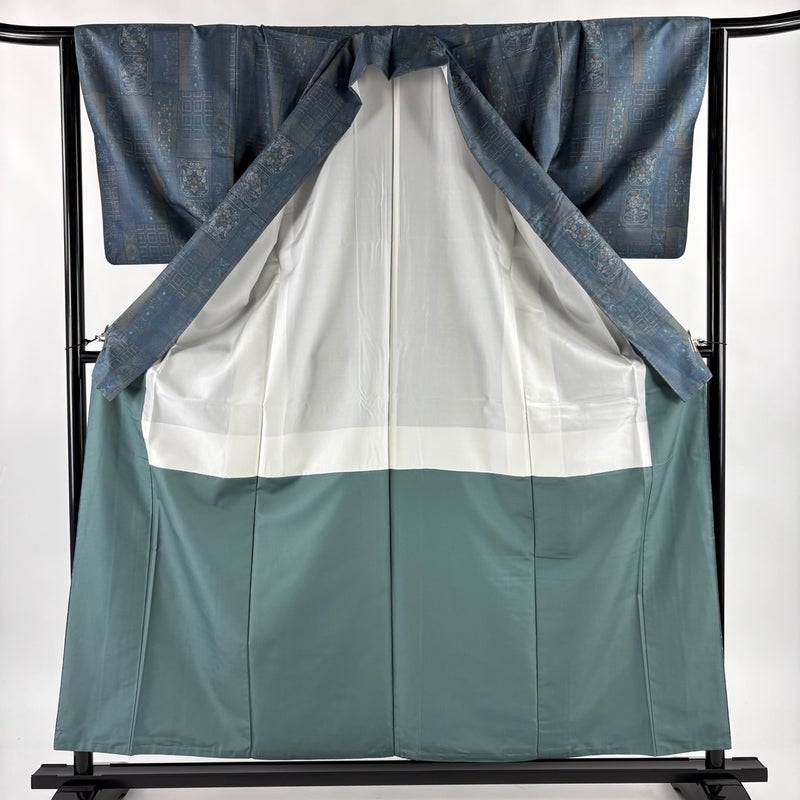 【紬】 青系 青緑 名品 B 約150cm~約159cm 裄丈63cm-64cm (M)size 袖丈49cm 9990-29990 二万以下