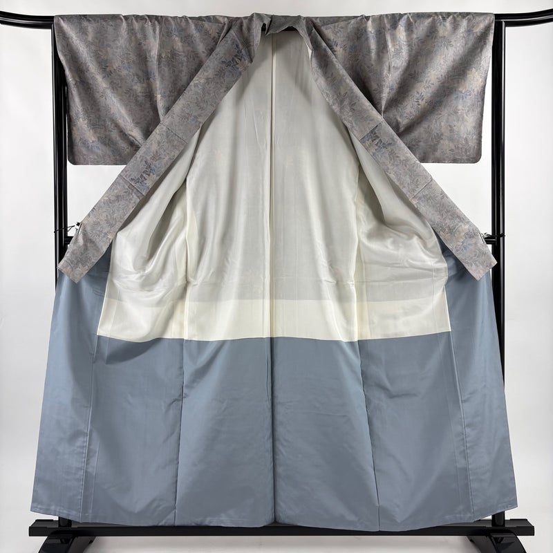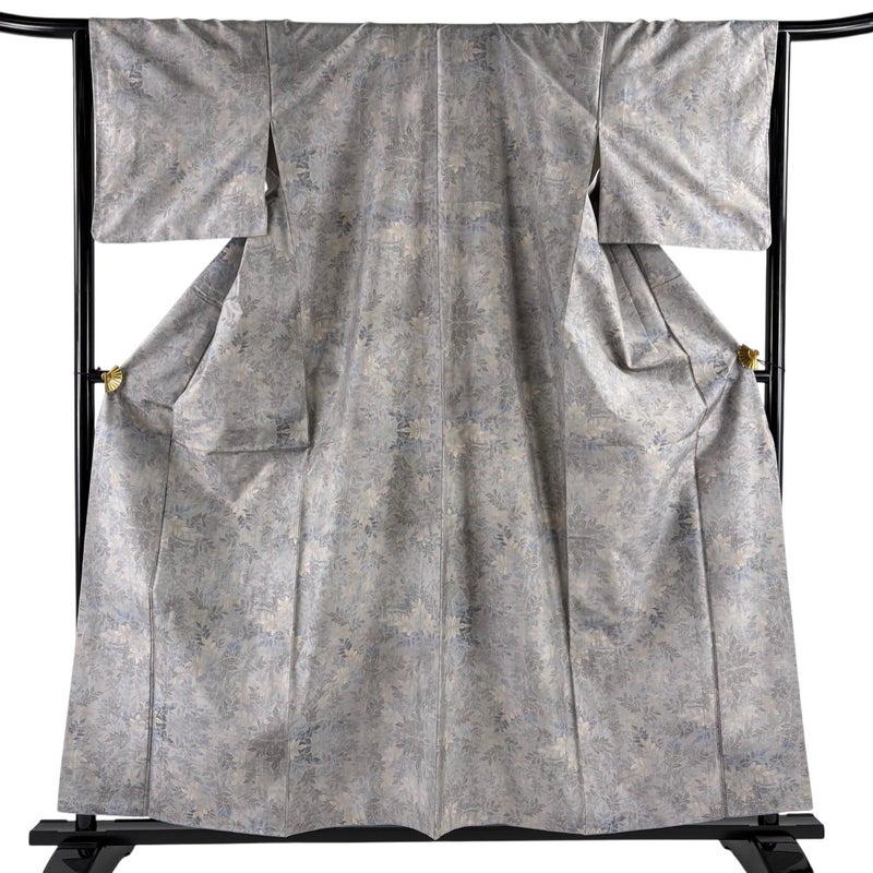 【着物ランク】名品 【素材】正絹 【身丈】約159cm 【裄丈】約65cm 【袖丈】約45cm 【袖幅】約33cm 【前幅】約28.5cm 【後幅】約32cm 【サイズ】M 【着物仕立て】袷 【着用時期】10~5月 【状態ランク】ランクA 【着物着用シーン】気軽なパーティー、観劇、食事会、正月、気軽なお茶会、街着