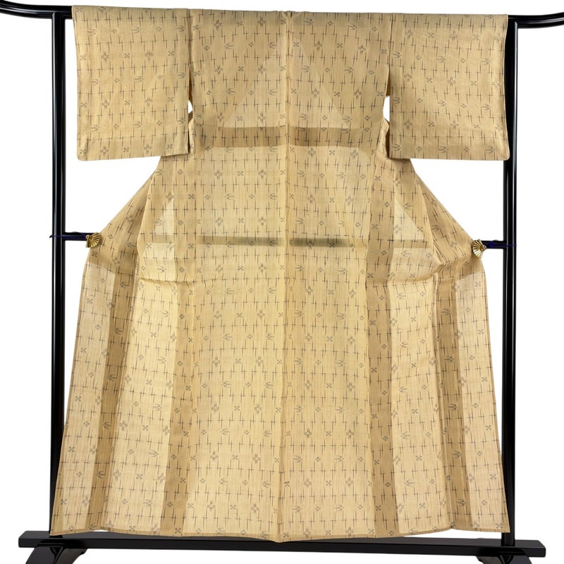 【着物ランク】名品 【素材】正絹 【身丈】約155.5cm 【裄丈】約63cm 【袖丈】約47cm 【袖幅】約32cm 【前幅】約22cm 【後幅】約28cm 【サイズ】S 【着物仕立て】薄物 【着用時期】7~8月 【状態ランク】ランクA 【着物着用シーン】気軽なパーティー、観劇、食事会、正月、気軽なお茶会、街着
