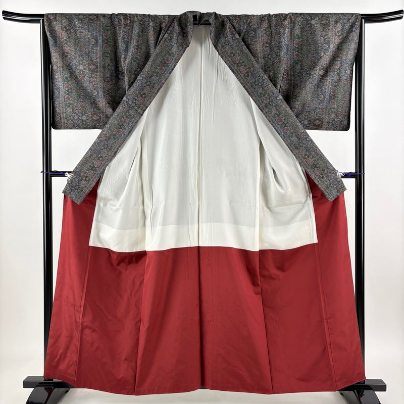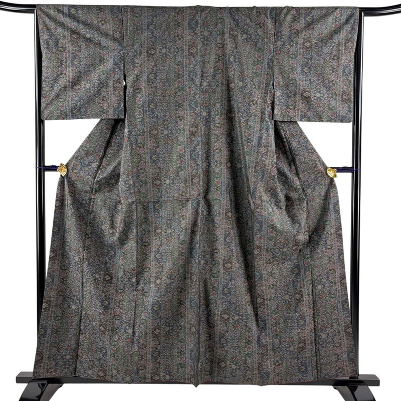 【着物ランク】名品 【素材】正絹 【身丈】約159.5cm 【裄丈】約65cm 【袖丈】約48.5cm 【袖幅】約33.5cm 【前幅】約25.5cm 【後幅】約30.5cm 【サイズ】M 【着物仕立て】袷 【着用時期】10~5月 【状態ランク】ランクB 【着物着用シーン】気軽なパーティー、観劇、食事会、正月、気軽なお茶会、街着