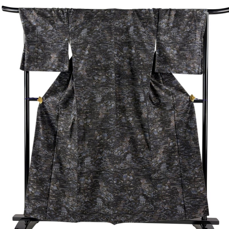 【着物ランク】名品 【素材】正絹 【身丈】約160cm 【裄丈】約69cm 【袖丈】約49.5cm 【袖幅】約36cm 【前幅】約23cm 【後幅】約30cm 【サイズ】L 【着物仕立て】袷 【着用時期】10~5月 【状態ランク】ランクA 【着物着用シーン】気軽なパーティー、観劇、食事会、正月、気軽なお茶会、街着