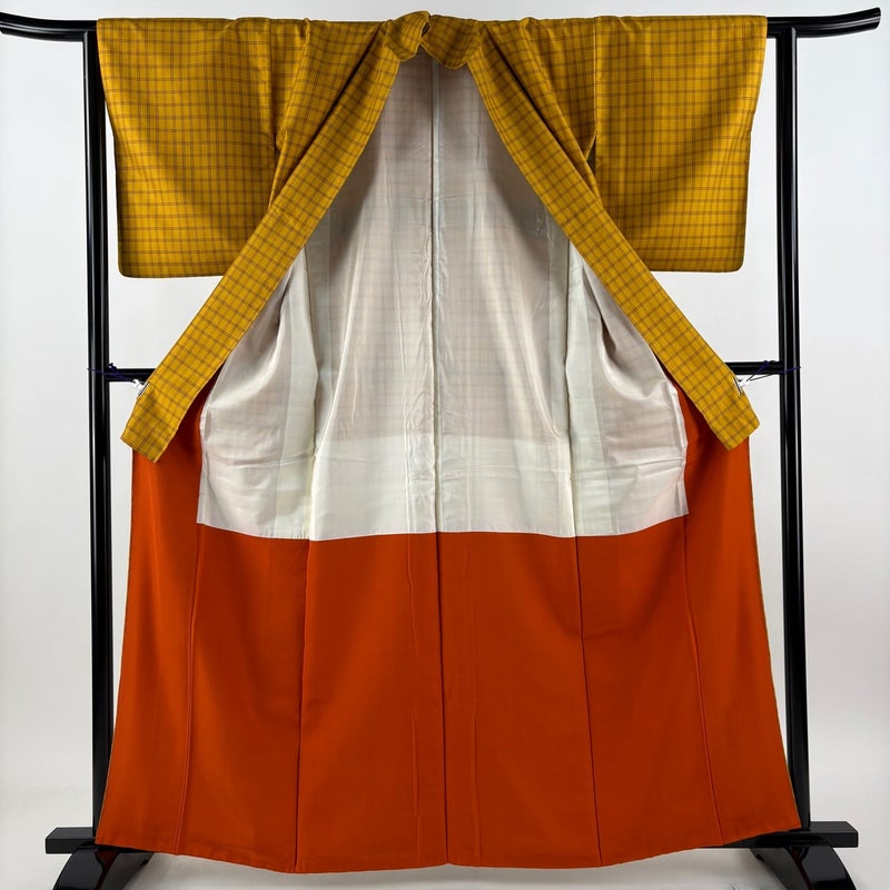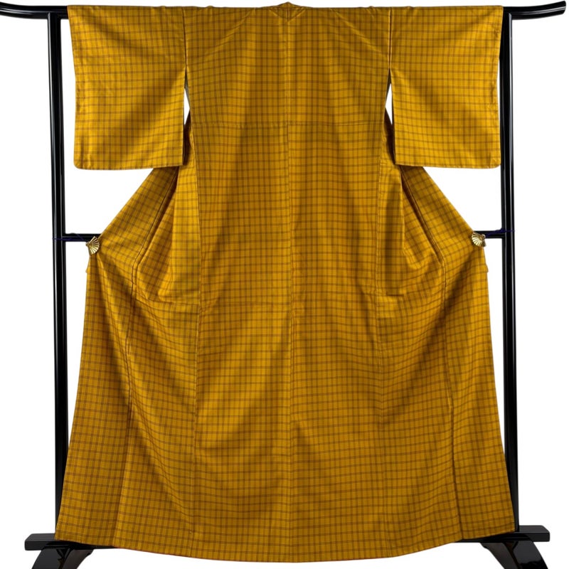 【紬】 黄色系 黄土色 名品 C 約160cm~約169cm 裄丈63cm-64cm (S)size 袖丈49cm 9990-29990 二万以下