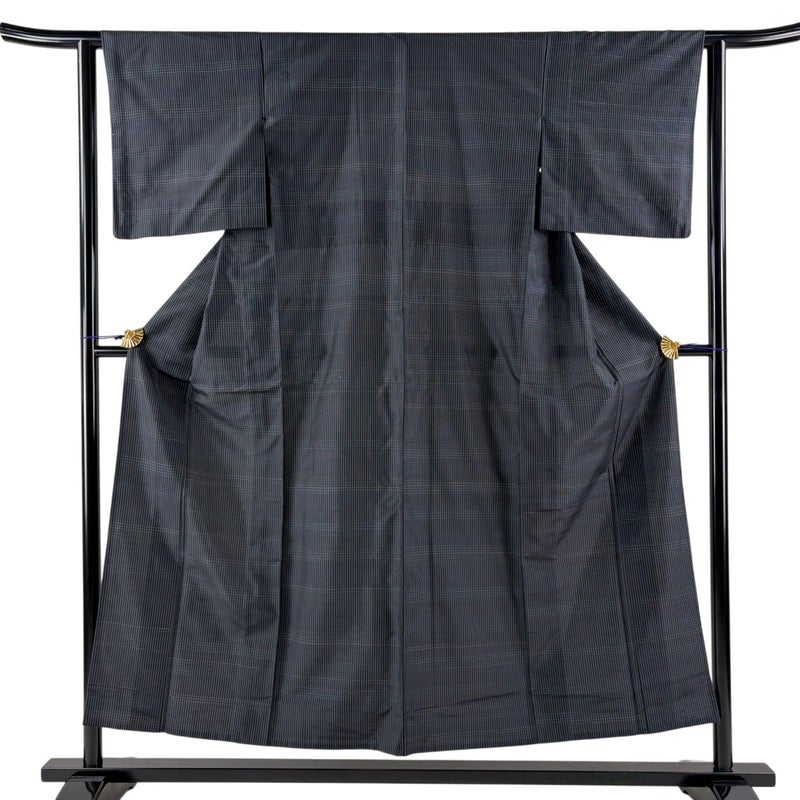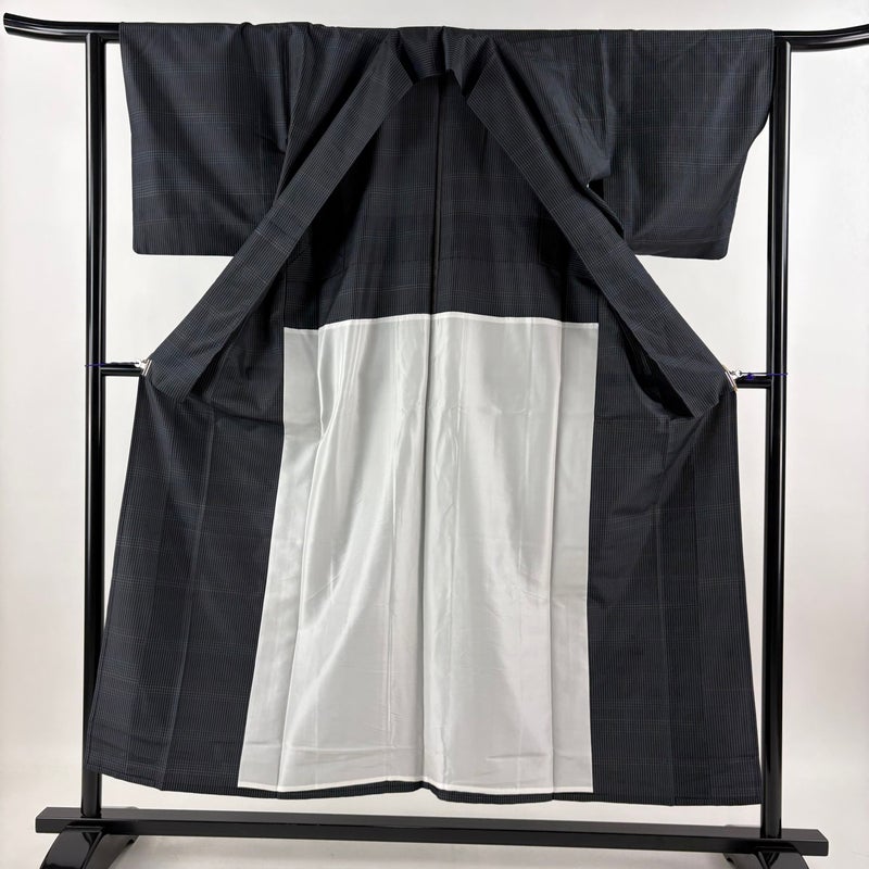 【紬】 黒系 黒 秀品 A 約150cm~約159cm 裄丈62cm以下 (S)size 袖丈46cm以下 9990-29990 美品 二万以下