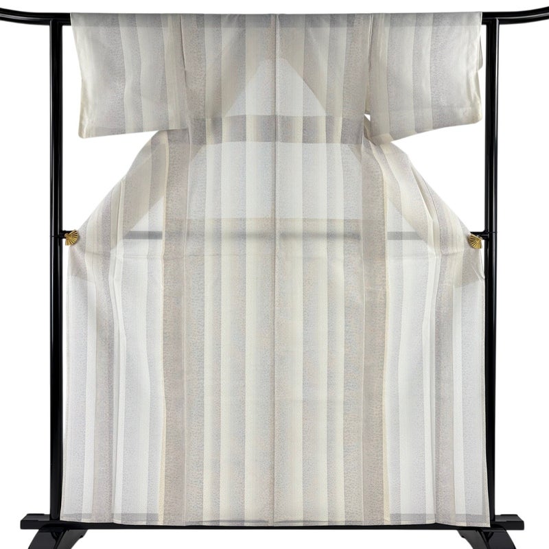 【着物ランク】秀品 【素材】正絹 【身丈】約162.5cm 【裄丈】約61cm 【袖丈】約43.5cm 【袖幅】約32cm 【前幅】約22cm 【後幅】約27cm 【サイズ】S 【着物仕立て】薄物 【着用時期】7~8月 【状態ランク】ランクA 【着物着用シーン】気軽なパーティー、観劇、食事会、正月、気軽なお茶会、街着