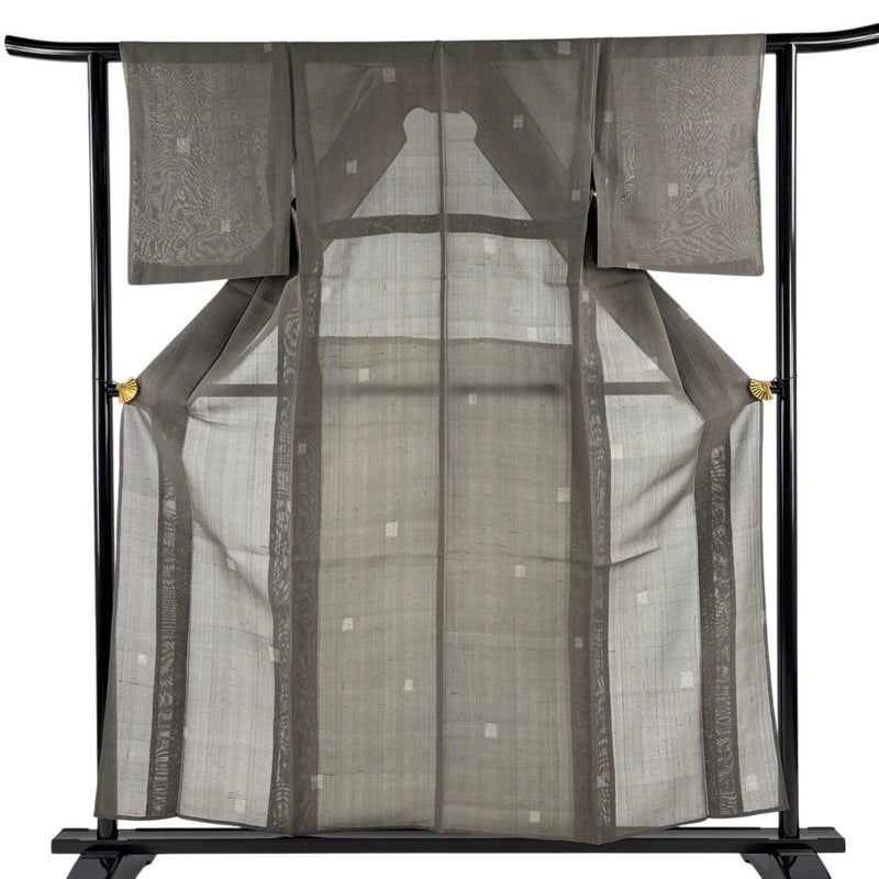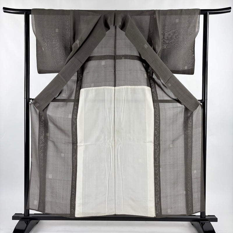 【着物ランク】秀品 【素材】正絹 【身丈】約157.5cm 【裄丈】約60.5cm 【袖丈】約48.5cm 【袖幅】約31.5cm 【前幅】約23.5cm 【後幅】約29.5cm 【サイズ】S 【着物仕立て】薄物 【着用時期】7~8月 【状態ランク】ランクC 【着物着用シーン】気軽なパーティー、観劇、食事会、正月、気軽なお茶会、街着