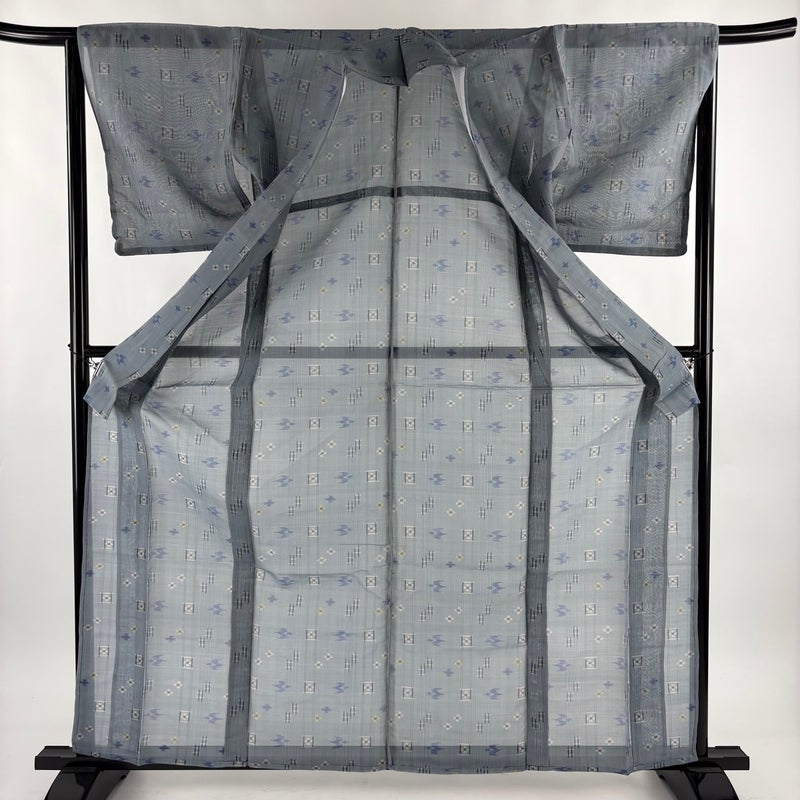 【紬】 灰色系 青灰色 秀品 B 約160cm~約169cm 裄丈63cm-64cm (M)size 袖丈48cm 9990-29990 二万以下
