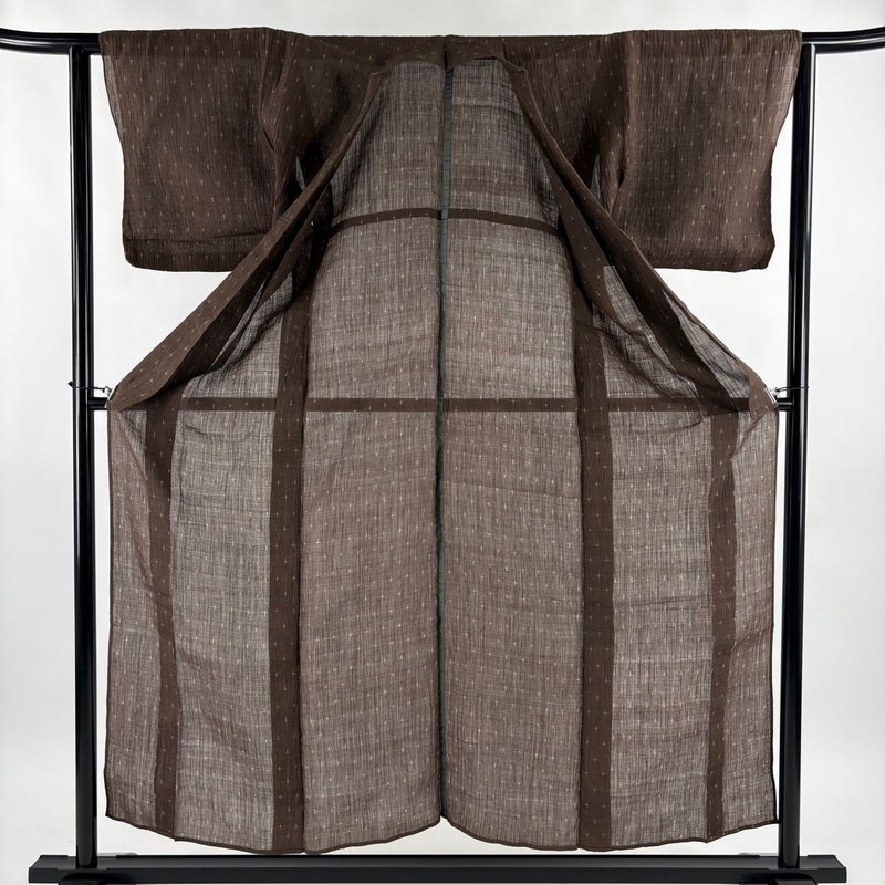【着物ランク】秀品 【素材】麻 【身丈】約153cm 【裄丈】約63cm 【袖丈】約44cm 【袖幅】約32.5cm 【前幅】約25cm 【後幅】約29cm 【サイズ】S 【着物仕立て】薄物 【着用時期】7~8月 【状態ランク】ランクC 【着物着用シーン】気軽なパーティー、観劇、食事会、正月、気軽なお茶会、街着