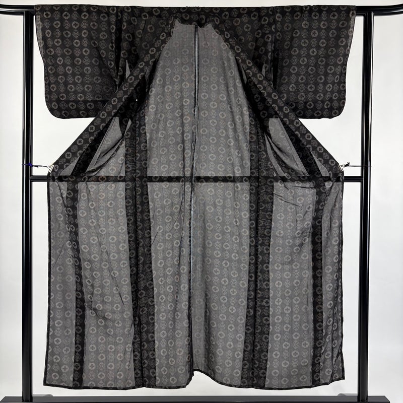 【紬】 黒系 黒 秀品 C 約150cm~約159cm 裄丈62cm以下 (S)size 袖丈46cm以下 7990-9980 二万以下