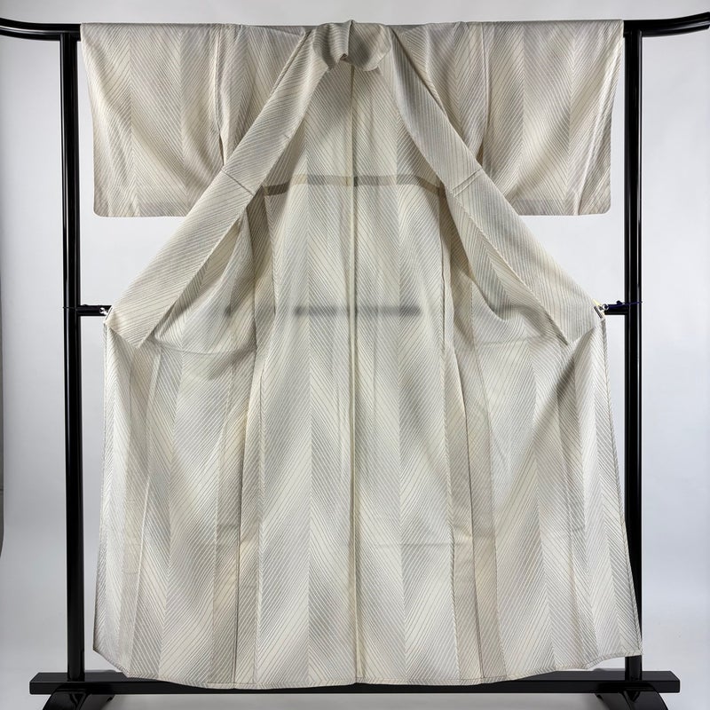 【紬】 白系 クリーム 秀品 A 約150cm~約159cm 裄丈62cm以下 (S)size 袖丈46cm以下 9990-29990 美品 二万以下