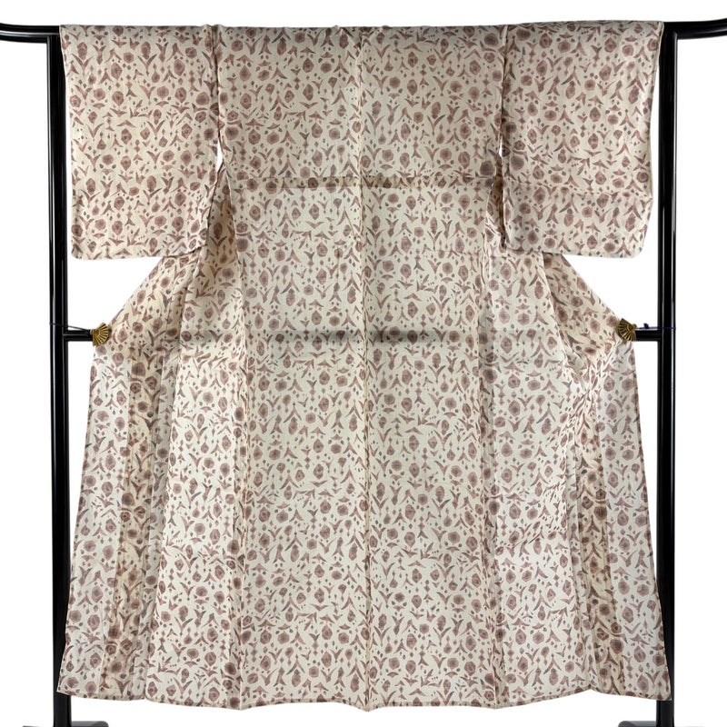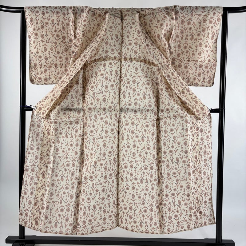 【紬】 白系 ベージュ 秀品 C 約150cm~約159cm 裄丈63cm-64cm (M)size 袖丈50cm-60cm 7990-9980 二万以下