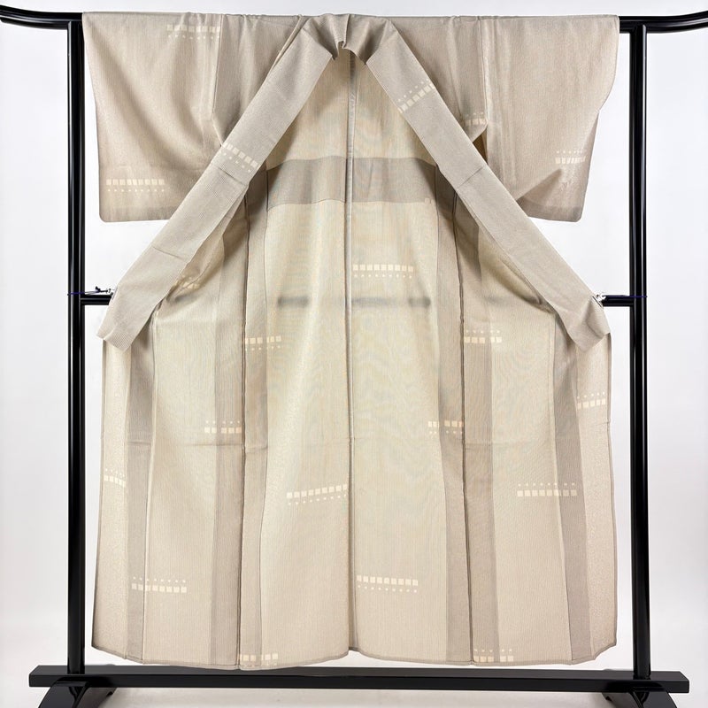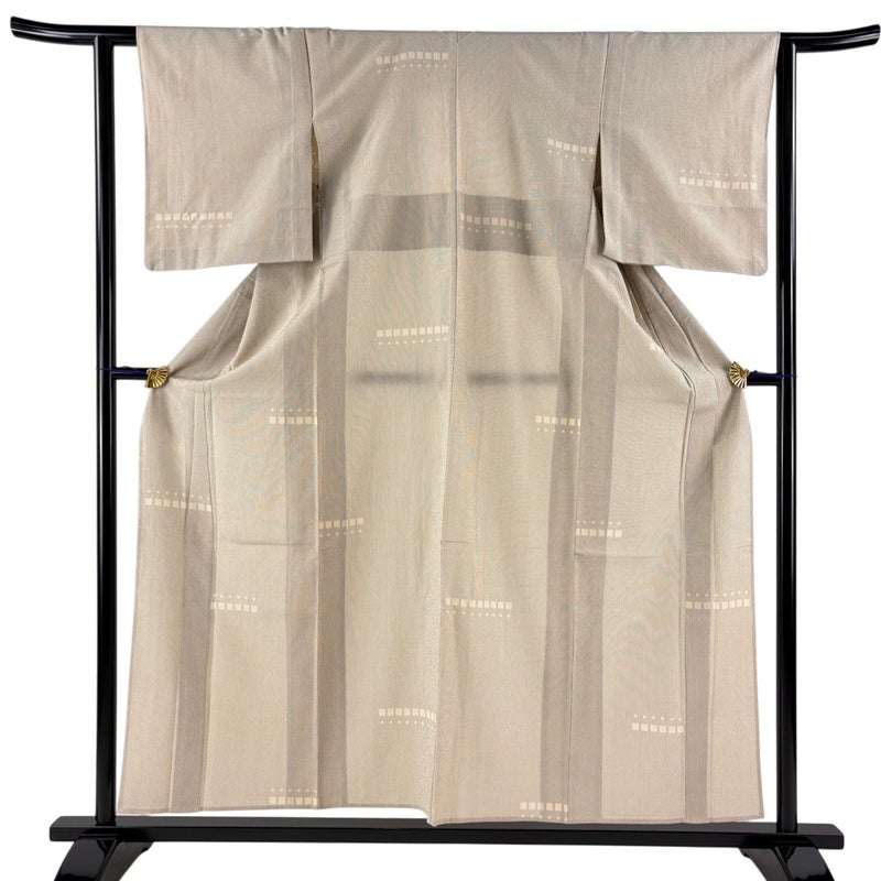 【紬】 白系 ベージュ 秀品 A 約150cm~約159cm 裄丈62cm以下 (S)size 袖丈49cm 9990-29990 美品 二万以下