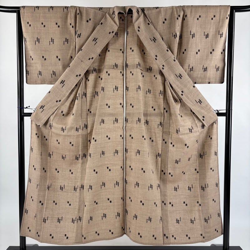 普段着やおしゃれ着として人気の紬でございます。 元々は日常着として着用していたので、その土地の風土に合った様々な種類がある素敵な一品です。 ※身丈・裄丈の縫込みの長さは測っておりません。 衿周りに汚れ、右前袖所々に糸つれがございます。 衿裏所々にシミ、衿裏にホックシミがございます。 リユース品としては目立った染み傷なく、状態の良いお品でございます。 ※なお、厳しく商品の状態確認を行っておりますが、記載の汚れ以外にも見落とし箇所がある可能性がある旨ご了承いただけますと幸いです。 沢山の商品の中からご覧いただき誠にありがとうございます。
