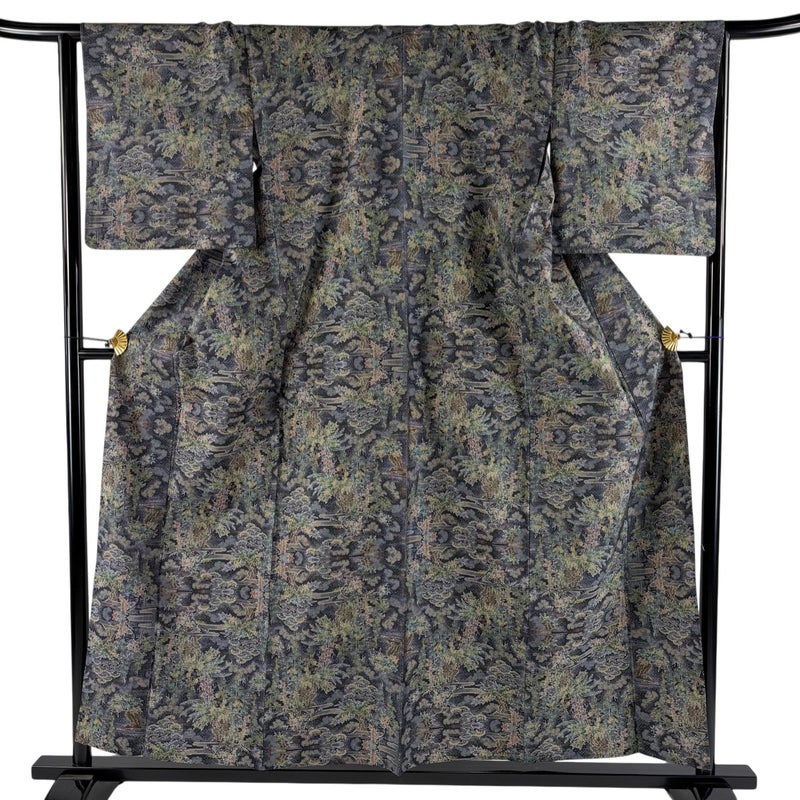 【着物ランク】名品 【素材】正絹 【身丈】約156cm 【裄丈】約65cm 【袖丈】約48cm 【袖幅】約34cm 【前幅】約25cm 【後幅】約30cm 【サイズ】M 【着物仕立て】単衣 【着用時期】6/9月 【状態ランク】ランクA 【着物着用シーン】気軽なパーティー、観劇、食事会、正月、気軽なお茶会、街着