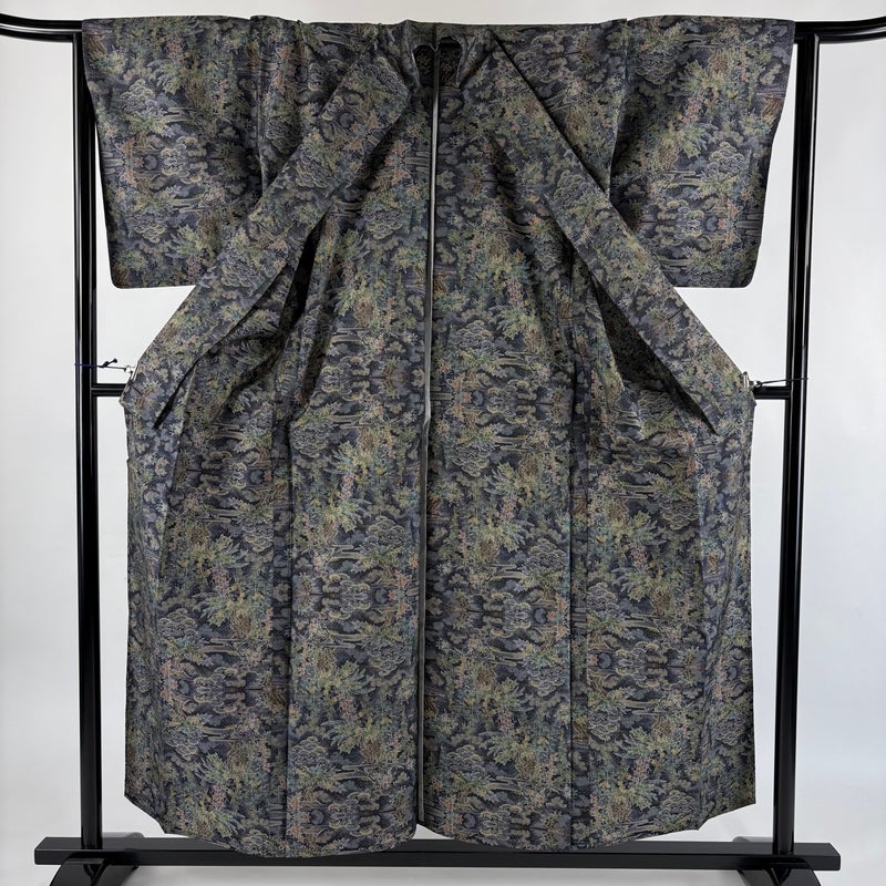 【紬】 灰色系 青灰色 名品 A 約150cm~約159cm 裄丈65cm (M)size 袖丈48cm 9990-29990 美品 五万以下