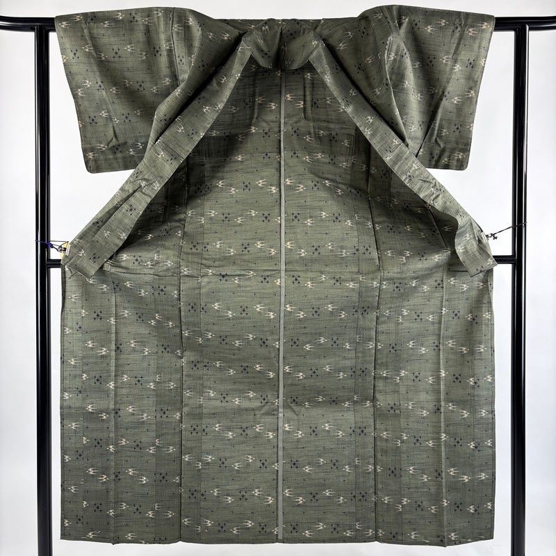 【紬】 灰色系 灰緑 名品 B 約150cm~約159cm 裄丈62cm以下 (S)size 袖丈46cm以下 9990-29990 五万以下