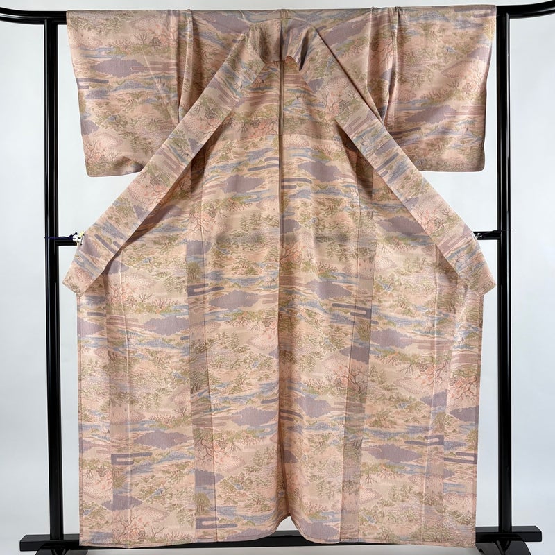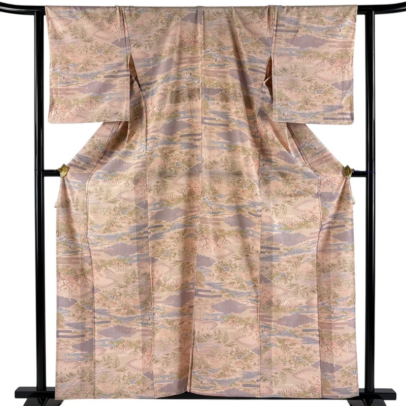 【着物ランク】名品 【素材】正絹 【身丈】約160cm 【裄丈】約64cm 【袖丈】約49cm 【袖幅】約33cm 【前幅】約25.5cm 【後幅】約30.5cm 【サイズ】M 【着物仕立て】単衣 【着用時期】6/9月 【状態ランク】ランクA 【着物着用シーン】気軽なパーティー、観劇、食事会、正月、気軽なお茶会、街着