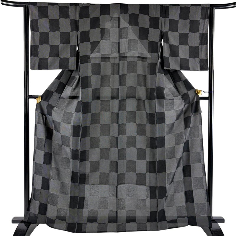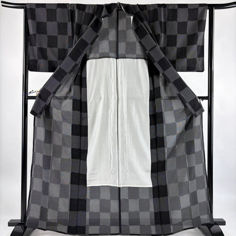 【紬】 黒系 黒 名品 B 約160cm~約169cm 裄丈63cm-64cm (S)size 袖丈48cm 9990-29990 五万以下