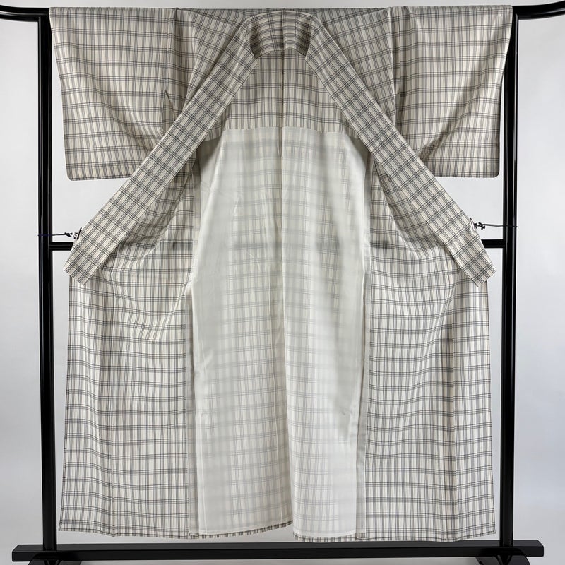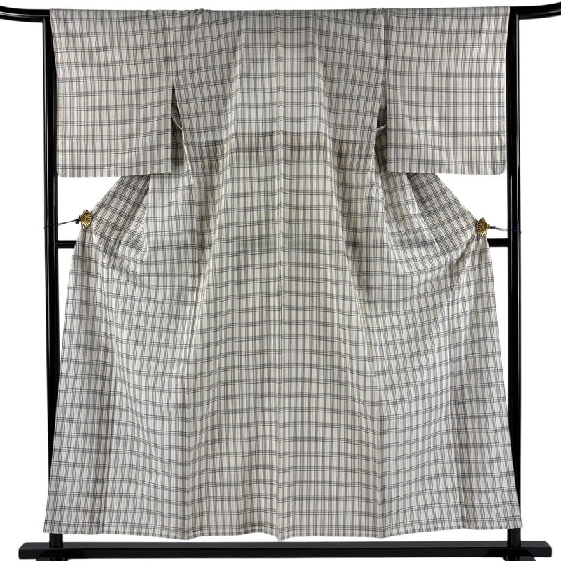 【紬】 灰色系 灰白 名品 A 約150cm~約159cm 裄丈65cm (M)size 袖丈48cm 9990-29990 美品 五万以下