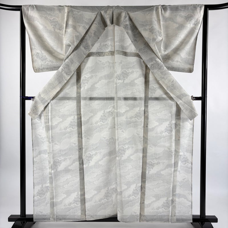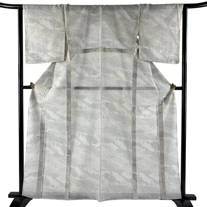 【着物ランク】名品 【素材】正絹 【身丈】約161cm 【裄丈】約64.5cm 【袖丈】約49cm 【袖幅】約33cm 【前幅】約23cm 【後幅】約29cm 【サイズ】M 【着物仕立て】薄物 【着用時期】7~8月 【状態ランク】ランクB 【着物着用シーン】気軽なパーティー、観劇、食事会、正月、気軽なお茶会、街着