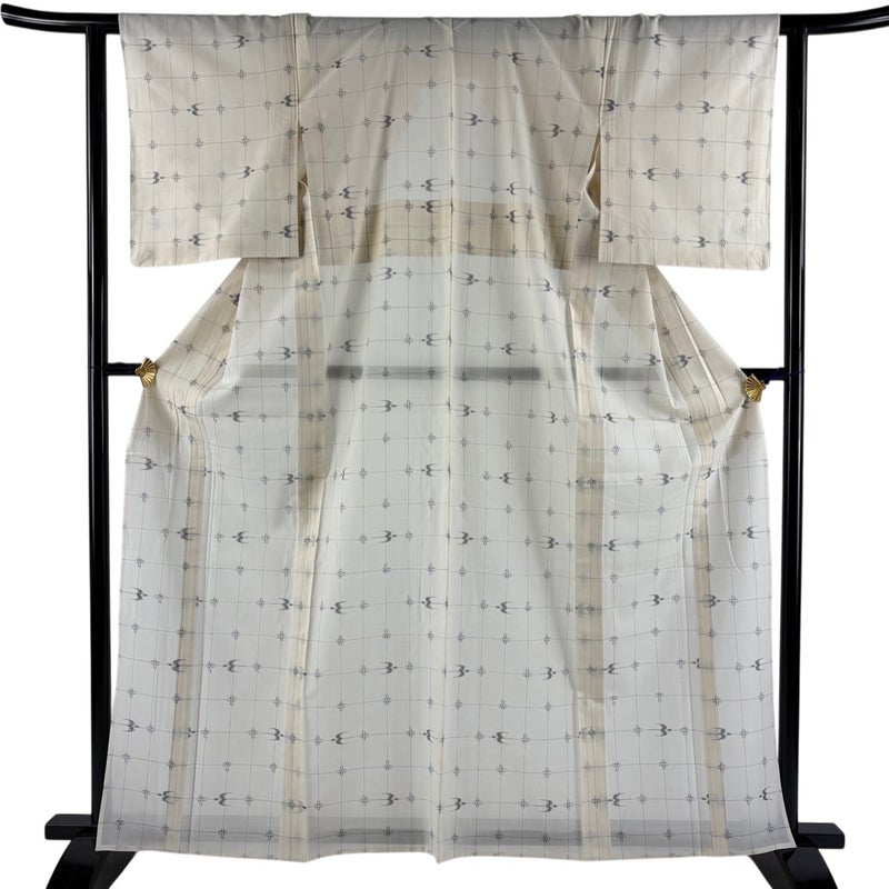 【着物ランク】名品 【素材】正絹 【身丈】約164cm 【裄丈】約63cm 【袖丈】約49cm 【袖幅】約32.5cm 【前幅】約24cm 【後幅】約29cm 【サイズ】S 【着物仕立て】薄物 【着用時期】7~8月 【状態ランク】ランクA 【着物着用シーン】気軽なパーティー、観劇、食事会、正月、気軽なお茶会、街着