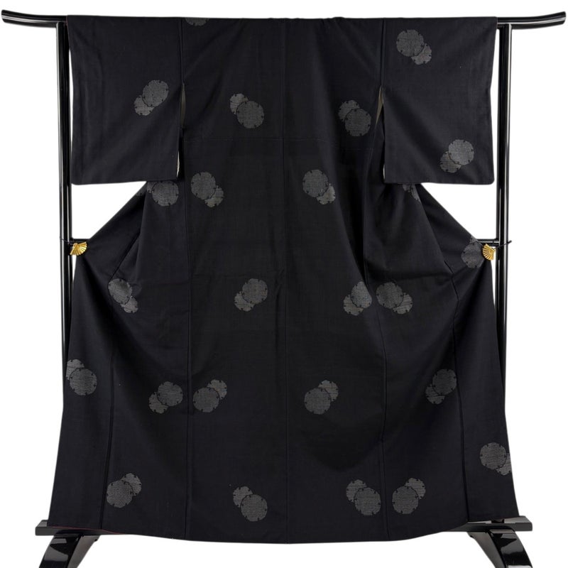 【紬】 黒系 黒 名品 B 約160cm~約169cm 裄丈63cm-64cm (S)size 袖丈50cm-60cm 9990-29990 二万以下