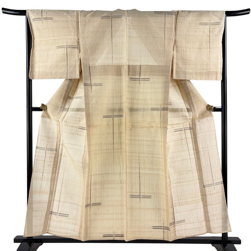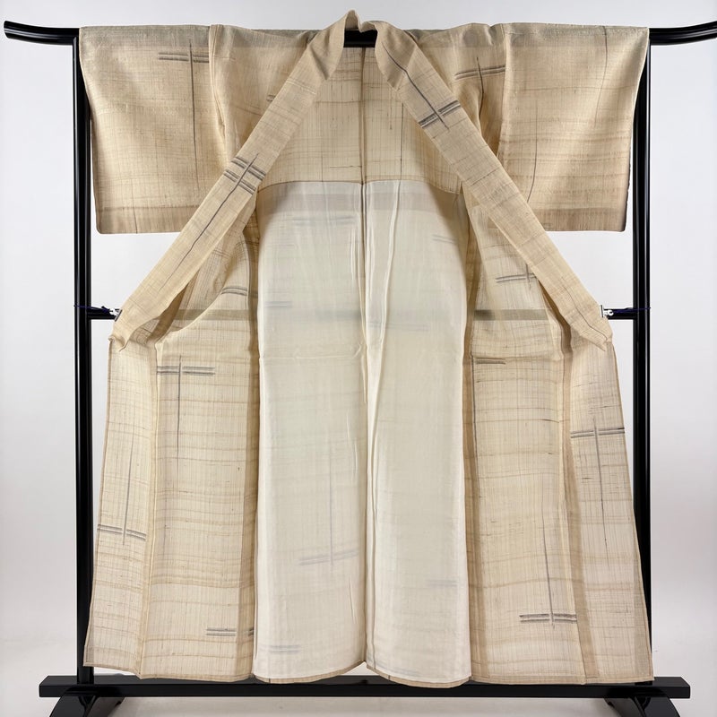 【紬】 白系 ベージュ 名品 A 約150cm~約159cm 裄丈65cm (M)size 袖丈48cm 9990-29990 美品 五万以下