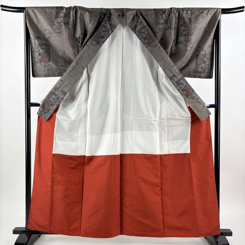 【着物ランク】秀品 【素材】正絹 【身丈】約161cm 【裄丈】約67cm 【袖丈】約48cm 【袖幅】約34.5cm 【前幅】約23cm 【後幅】約31cm 【サイズ】M 【着物仕立て】袷 【着用時期】10~5月 【状態ランク】ランクA 【着物着用シーン】気軽なパーティー、観劇、食事会、正月、気軽なお茶会、街着