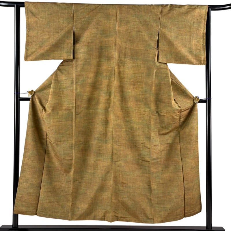 【紬】 緑系 鶯色 優品 A 約150cm~約159cm 裄丈62cm以下 (S)size 袖丈46cm以下 4000-7980 美品 二万以下