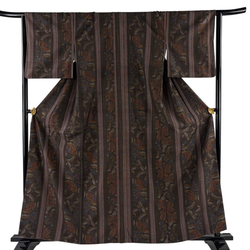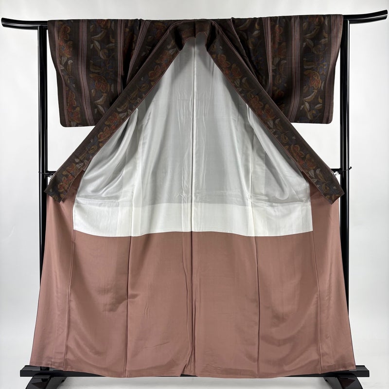 【紬】 茶系 焦茶色 優品 B 約160cm~約169cm 裄丈63cm-64cm (M)size 袖丈46cm以下 -3980 二万以下