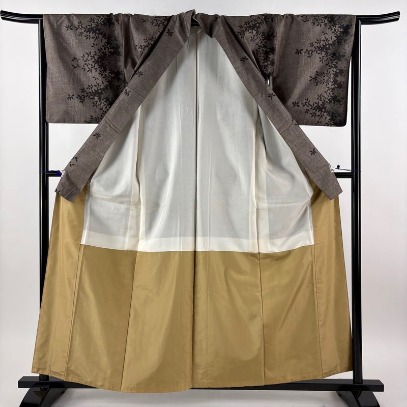 【着物ランク】秀品 【素材】正絹 【身丈】約160cm 【裄丈】約66cm 【袖丈】約47cm 【袖幅】約33.5cm 【前幅】約24.5cm 【後幅】約30cm 【サイズ】M 【着物仕立て】袷 【着用時期】10~5月 【状態ランク】ランクA 【着物着用シーン】気軽なパーティー、観劇、食事会、正月、気軽なお茶会、街着