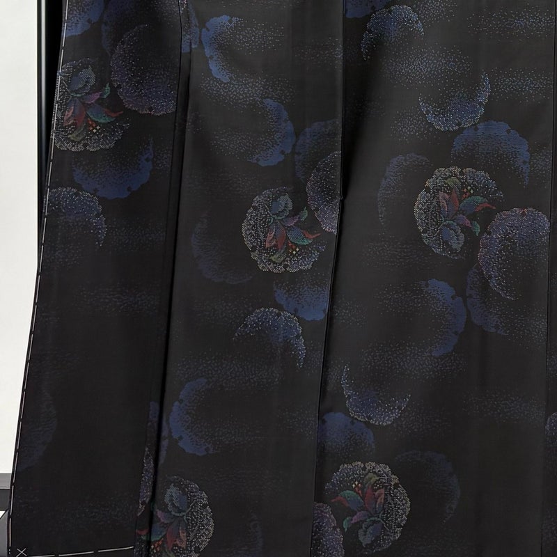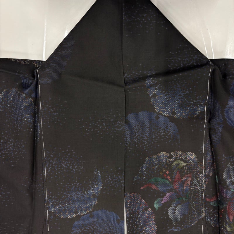 【紬】 黒系 黒 秀品 A 約160cm~約169cm 裄丈66cm (M)size 袖丈49cm 7990-9980 美品 二万以下