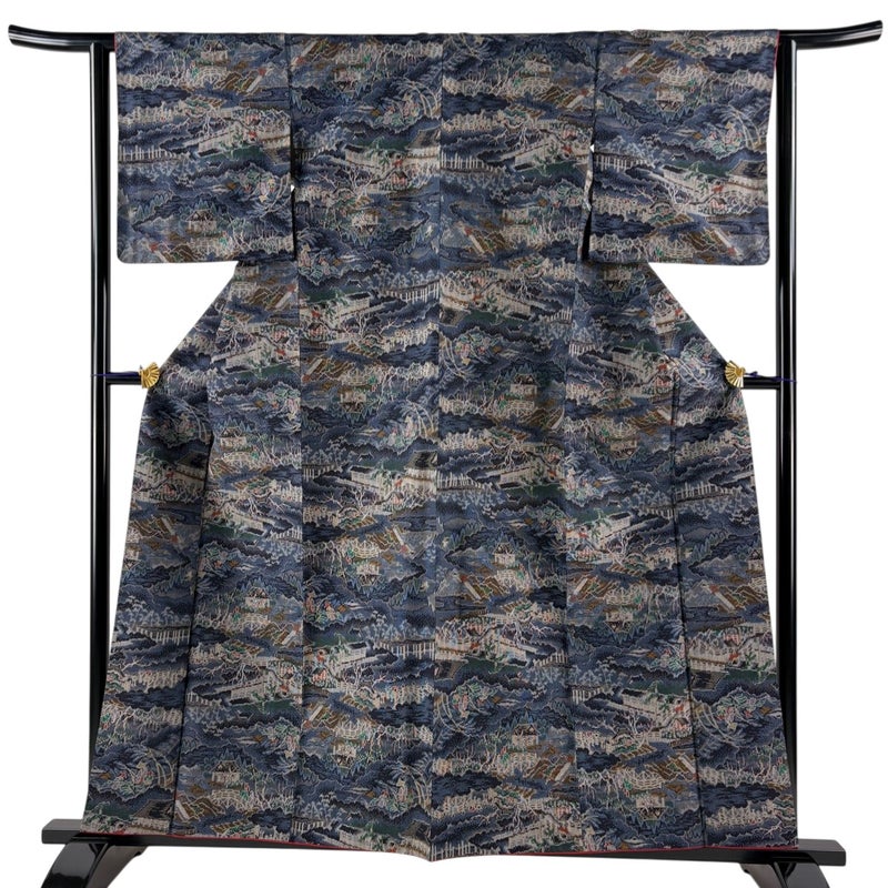 【着物ランク】優品 【素材】正絹 【身丈】約159cm 【裄丈】約62.5cm 【袖丈】約49.5cm 【袖幅】約32.5cm 【前幅】約23cm 【後幅】約28.5cm 【サイズ】S 【着物仕立て】袷 【着用時期】10~5月 【状態ランク】ランクA 【着物着用シーン】気軽なパーティー、観劇、食事会、正月、気軽なお茶会、街着