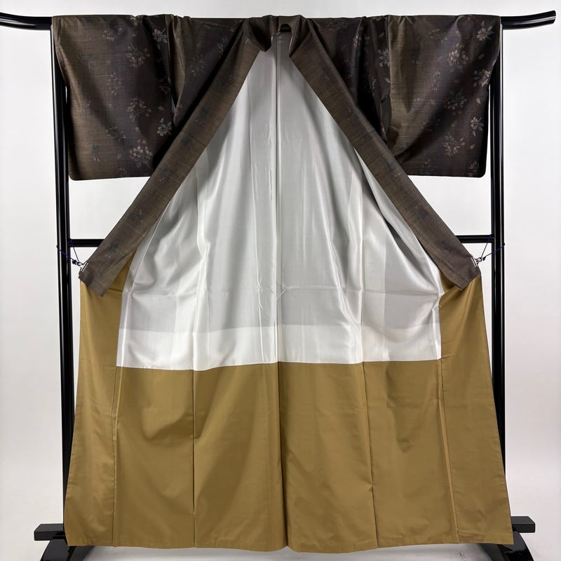 【紬】 茶系 焦茶色 秀品 A 約160cm~約169cm 裄丈67cm-68cm (M)size 袖丈48cm 7990-9980 美品 二万以下