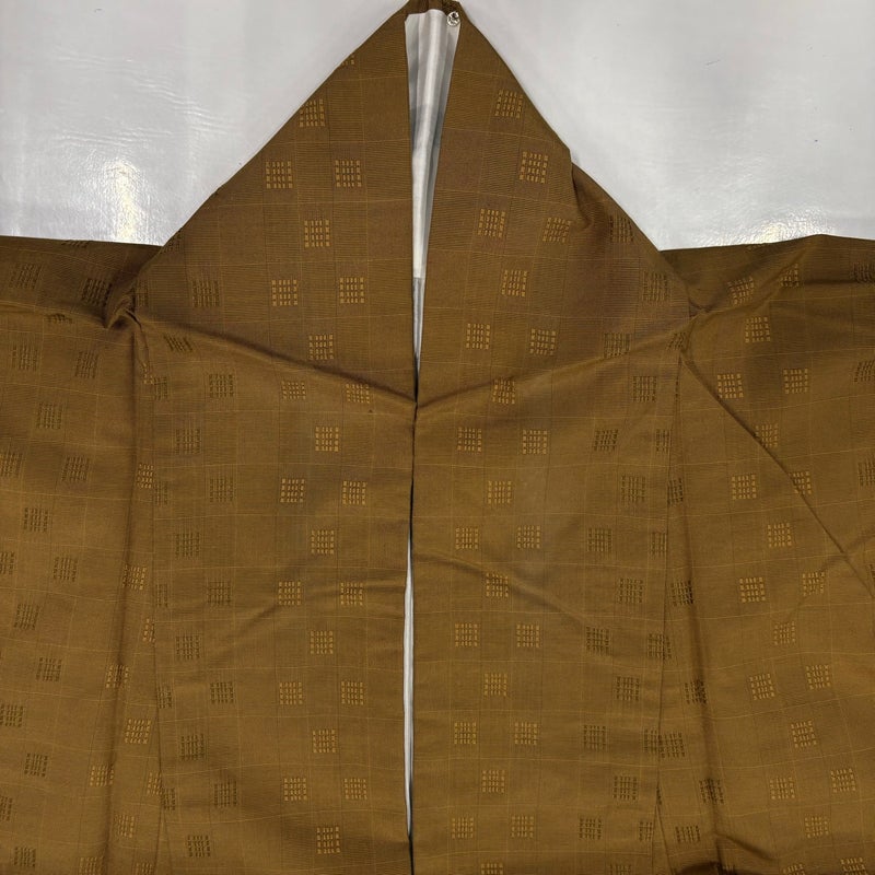 普段着やおしゃれ着として人気の紬でございます。 元々は日常着として着用していたので、その土地の風土に合った様々な種類がある素敵な一品です。 ※身丈・裄丈の縫込みの長さは測っておりません。 衿周りや両袖口中に汚れ、表地所々にシワ、左後袖に糸つれがございます。 胴裏に薄いシミ、裏地両脇に汗シミ、裏地所々にシワ、衿裏に下糸の変色がございます。 ご購入の際はその点ご留意ください。 ※なお、厳しく商品の状態確認を行っておりますが、記載の汚れ以外にも見落とし箇所がある可能性がある旨ご了承いただけますと幸いです。 沢山の商品の中からご覧いただき誠にありがとうございます。