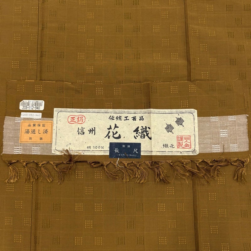 【紬】 黄色系 山吹茶色 名品 C 約160cm~約169cm 裄丈65cm (M)size 袖丈49cm 9990-29990 二万以下