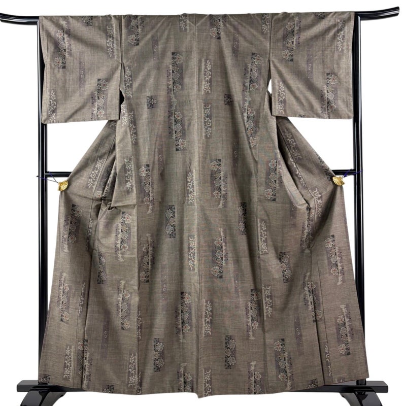 【着物ランク】秀品 【素材】正絹 【身丈】約160cm 【裄丈】約65cm 【袖丈】約48cm 【袖幅】約33cm 【前幅】約26.5cm 【後幅】約30.5cm 【サイズ】M 【着物仕立て】袷 【着用時期】10~5月 【状態ランク】ランクA 【着物着用シーン】気軽なパーティー、観劇、食事会、正月、気軽なお茶会、街着