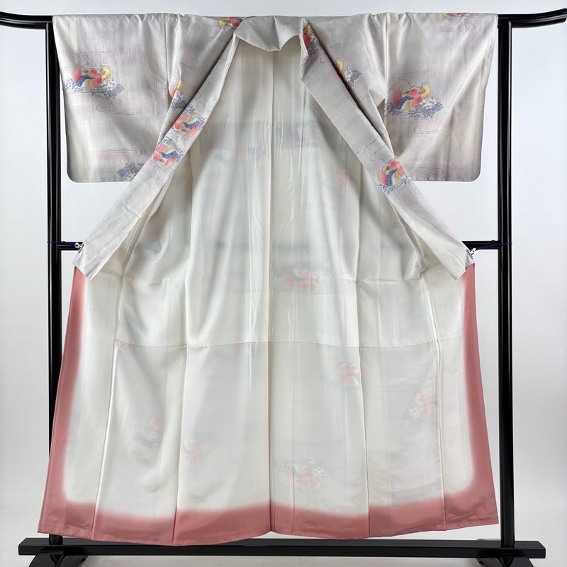 【着物ランク】秀品 【素材】正絹 【身丈】約156cm 【裄丈】約64cm 【袖丈】約49cm 【袖幅】約33cm 【前幅】約23cm 【後幅】約29.5cm 【サイズ】M 【着物仕立て】袷 【着用時期】10~5月 【状態ランク】ランクA 【着物着用シーン】気軽なパーティー、観劇、食事会、正月、気軽なお茶会、街着