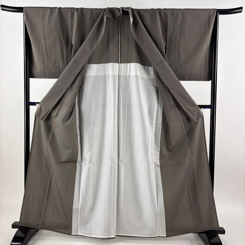 【紬】 灰色系 灰茶 秀品 A 約160cm~約169cm 裄丈66cm (M)size 袖丈50cm-60cm 9990-29990 美品 二万以下